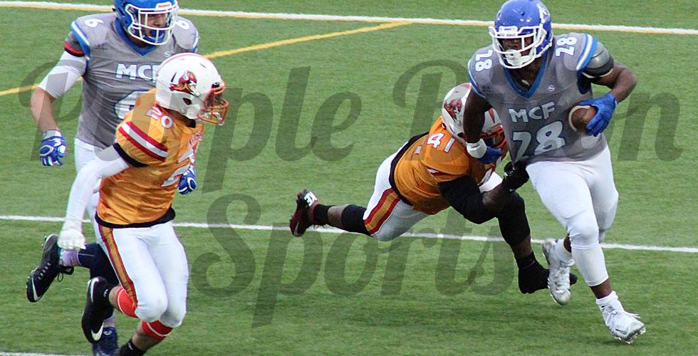 The statistics wouldn't say it, they wouldn't even create the impression of it in the mind of someone who wanted them to be of an "Air Raid" variety but with an average at best running game, the team made quick work of the Med City Freeze. The first touchdown pass by quarterback Ja'Vonte Johnson was also the only score of the first quarter. It, like two others in the second quarter, went the way of big Jon Baune. The longest of the three may have only been 36 yards but that's due in part to the great field position that the offense was in because of the defense.