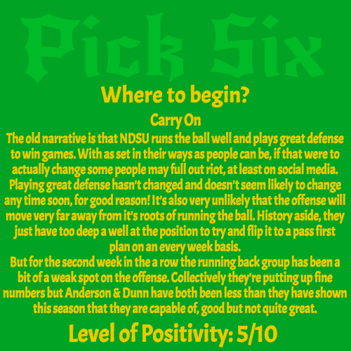 Pick Six: BunniesPurple Bizon SportsSep 30, 20181 min read #NDSU #Bison #NDSUFootball #BisonFootball #NDSUBison #DominateTheStaNDard #DakotaMarker #PickSix #Pick6 #GoBison #GoBison #MVFC